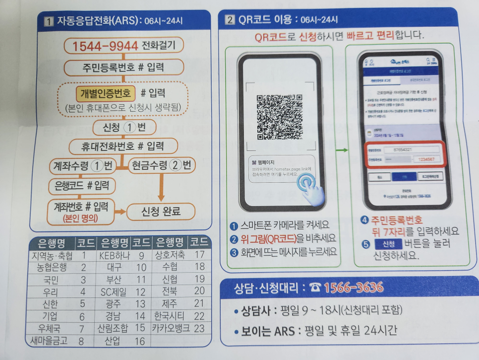 안내문을 받은 경우에는 안내문에 따라 ARS를 통해 신청이 가능합니다. 보이는 ARS의 경우 홈택스 모바일앱 설치가 필요하니 참고해주세요. ARS 외에도 홈택스(PC 및 모바일앱)를 통해서도 진행이 가능합니다.